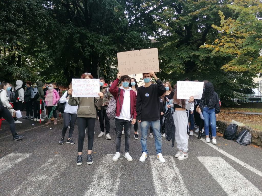 Presidio questa mattina davanti all'ingresso del liceo Manzoni di via Morselli a Varese da parte degli studenti. I ragazzi protestano chiedendo maggiore attenzione per quanto riguardo il distanziamento all'interno delle aule e delle scuola (leggi QUI). Questa mattina in un centinaio si sono radunati fuori dall'istituto.