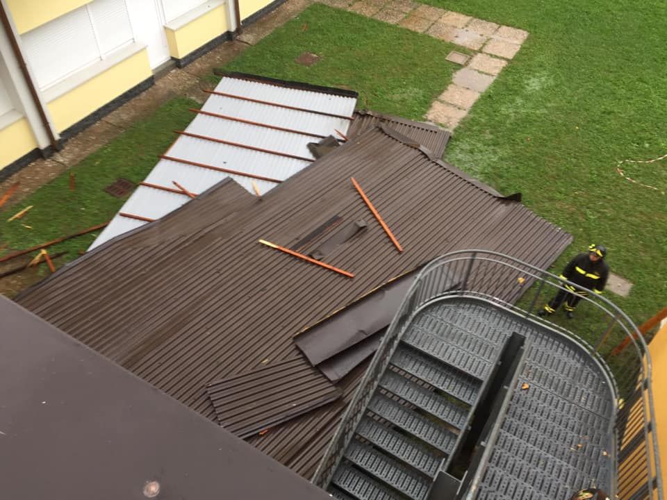 Il maltempo che si è abbattuto in questo ore con violenza sul Varesotto ha causato lo scoperchiamento del tetto della palestra della scuola Manzoni di Venegono Inferiore; a causare il danno, la violenza del vento.