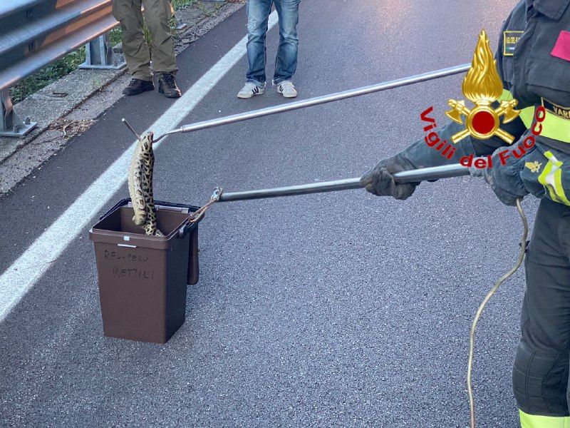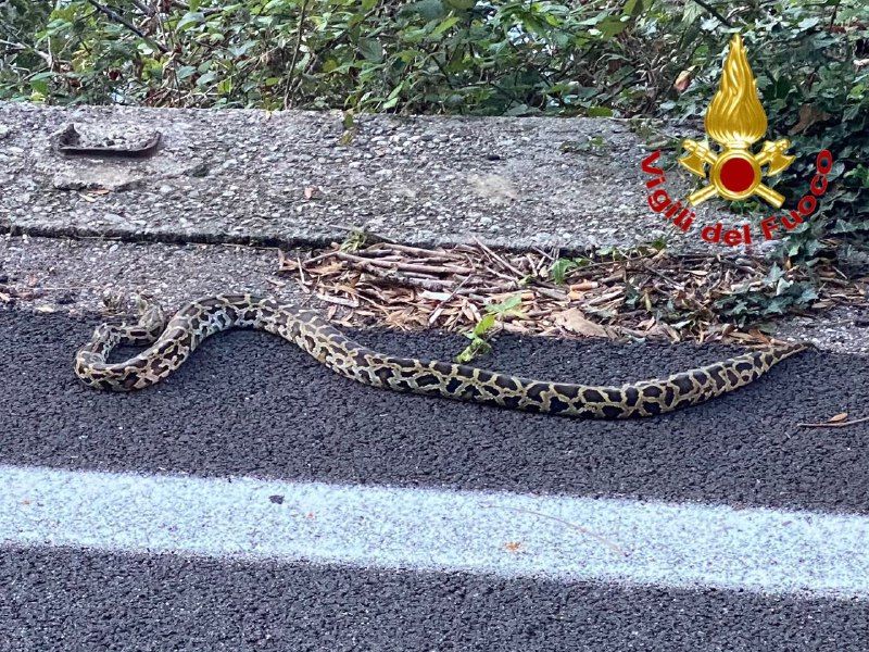 FOTO. Sulla statale 394 viaggia un... pitone. A Maccagno arrivano i vigili del fuoco
