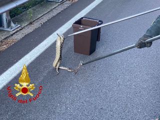 FOTO. Sulla statale 394 viaggia un... pitone. A Maccagno arrivano i vigili del fuoco