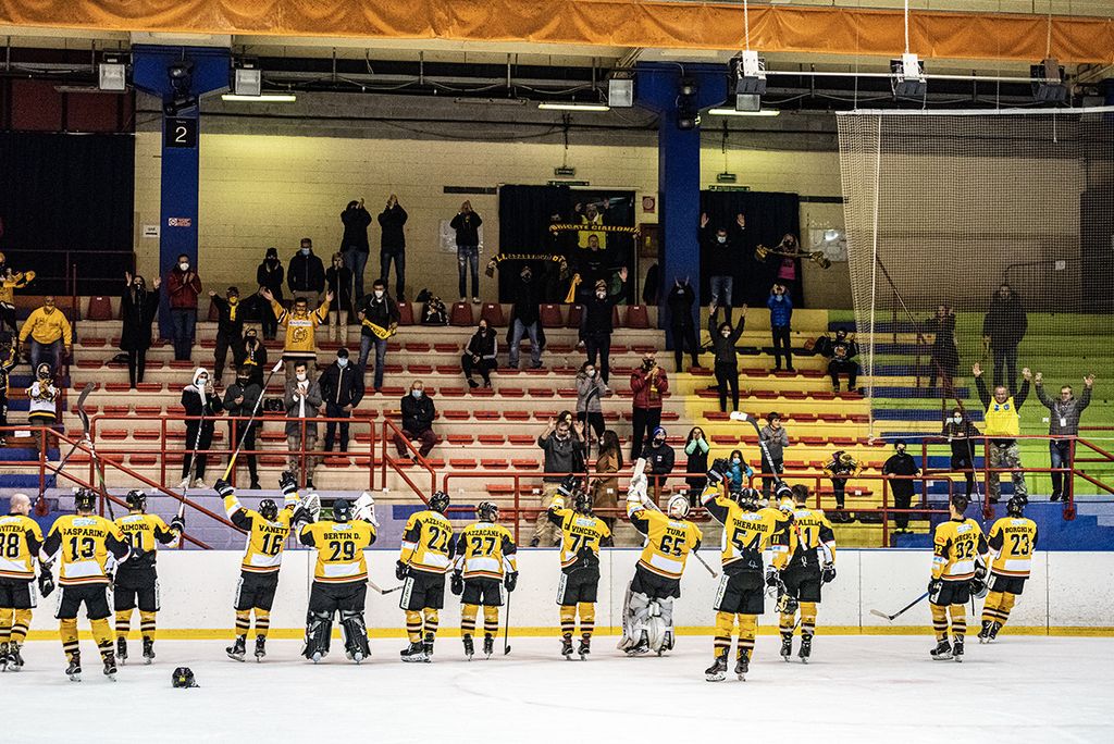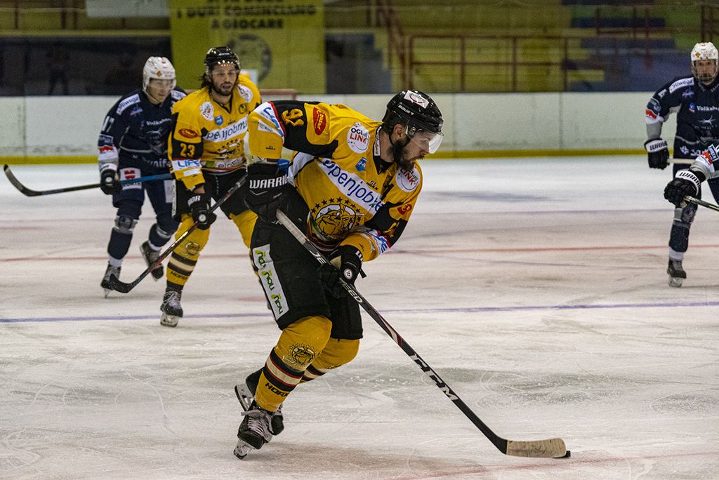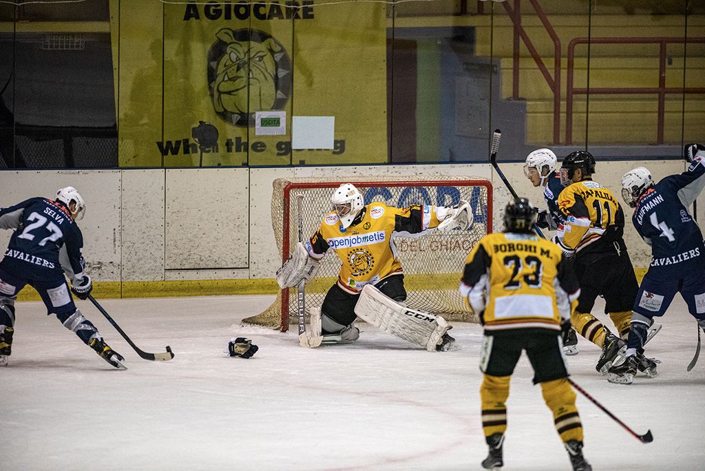 Nel secondo periodo era stata sofferenza totale con 12 minuti di penalità su 20: da qui nasceva la rimonta con l'uomo in più degli ospiti, prima del morso più velenoso, quello di Schina sotto porta: un colpo secco, quello del 3-2 dopo quasi 17 minuti di sudore e dolore. E poi, il gol più bello e voluto insieme a quello di Privitera, forse il più sofferto, il più eroico: Michael Mazzacane defilato, magnifico e imprendibile come il vento, schiacciava dentro il disco del 4-2. Nel momento della massima sofferenza, i Mastini hanno reagito aggrappandosi a tutto. Anche all'urlo dello speaker per il 27 giallonero: «Realizza per il Varese il dottor ortopedico, Michael Mazzacane!».