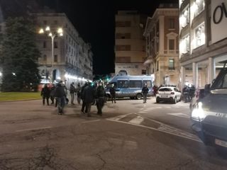 Da segnalare, sul finale della manifestazione, un fitto lancio di fumogeni dal centro della piazza, all'altezza della fontana, verso l'aiuola con l'abete, in direzione corso Matteotti (video a fondo articolo). Esploso anche qualche petardo con le forze dell'ordine a presidiare la zona.