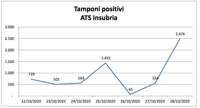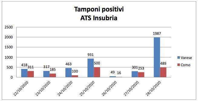 L'Agenzia della tutela della salute, in prima linea per il tracciamento dei casi di Covid, ha voluto in una nota dare dettagli in più sul perché di questa impennata nella giornata di oggi. «Si sottolinea - spiega Ats Insubria - che il dato non è strettamente correlato all’incremento nella giornata del numero dei positivi, in quanto risente delle chiusure di alcuni laboratori nel fine settimana e quindi dell’aumento dell’esecuzione dei tamponi all’inizio della settimana successiva; dei possibili ritardi nell’esecuzione dei tamponi da parte dei laboratori, in considerazione dell’incremento dell’attività sul territorio e infine dei ritardi nella comunicazione degli esiti nel flusso regionale».