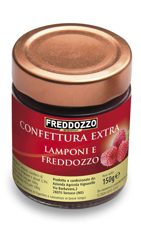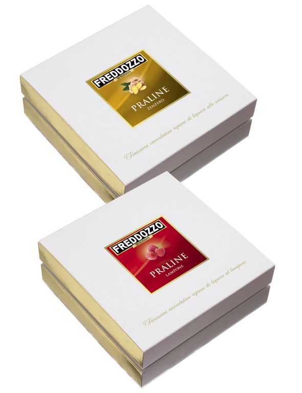 L’avventura è iniziata con due gustose e particolari rivisitazioni di alimenti di uso quotidiano: delle praline decorate a mano di finissimo cioccolato, ripiene di liquore Freddozzo e una confettura extra di lamponi caratterizzata dall’aggiunta del liquore al lampone. Con il cioccolato sono stati realizzati anche i dragèes: una particolare lavorazione in cui lamponi disidratati vengono ricoperti di cioccolato bianco. Il passo successivo, per i più golosi, è stato quello di creare una variante dei baci di dama: i classici biscotti alla nocciola accoppiati nella nuova versione da cioccolato bianco aromatizzato al lampone.