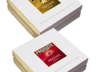 L’avventura è iniziata con due gustose e particolari rivisitazioni di alimenti di uso quotidiano: delle praline decorate a mano di finissimo cioccolato, ripiene di liquore Freddozzo e una confettura extra di lamponi caratterizzata dall’aggiunta del liquore al lampone. Con il cioccolato sono stati realizzati anche i dragèes: una particolare lavorazione in cui lamponi disidratati vengono ricoperti di cioccolato bianco. Il passo successivo, per i più golosi, è stato quello di creare una variante dei baci di dama: i classici biscotti alla nocciola accoppiati nella nuova versione da cioccolato bianco aromatizzato al lampone.