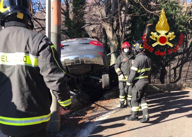 Paura sulla strada del Sacro Monte: auto esce di strada e resta in bilico sul precipizio
