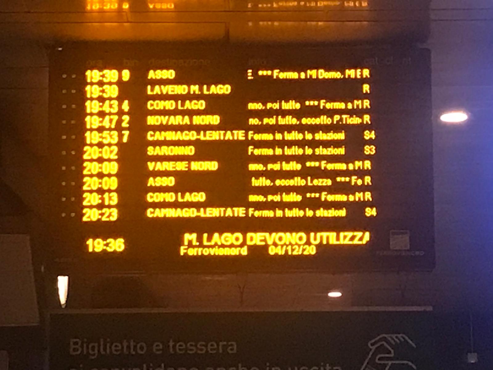 - N20 (Varese-Angera-Sesto Calende) viaggia regolare ma con forti ritardi e situazione molto insidiosa soprattutto nella tratta Angera-Taino;