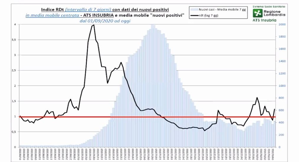 «L'indice di contagio Rdt tende ad aumentare - ha spiegato il direttore sanitario di Ats Insubria, Giuseppe Catanoso - ed è probabile che questo incremento sia dovuto ai comportamenti assunti in zona gialla prima delle vacanze di Natale, dal periodo delle feste e alla tranquillità fornita dall'inizio delle vaccinazioni. Atteggiamenti che hanno fatto abbassare la soglia di attenzione, ma bisogna considerare che per la maggior parte della popolazione il vaccino arriverà dopo l'estate. Fino all'immunità di gregge non si può abbassare la guardia. Lo dico soprattutto ai tanti giovani che continuano a non rispettare il distanziamento».
