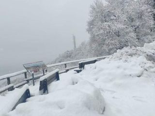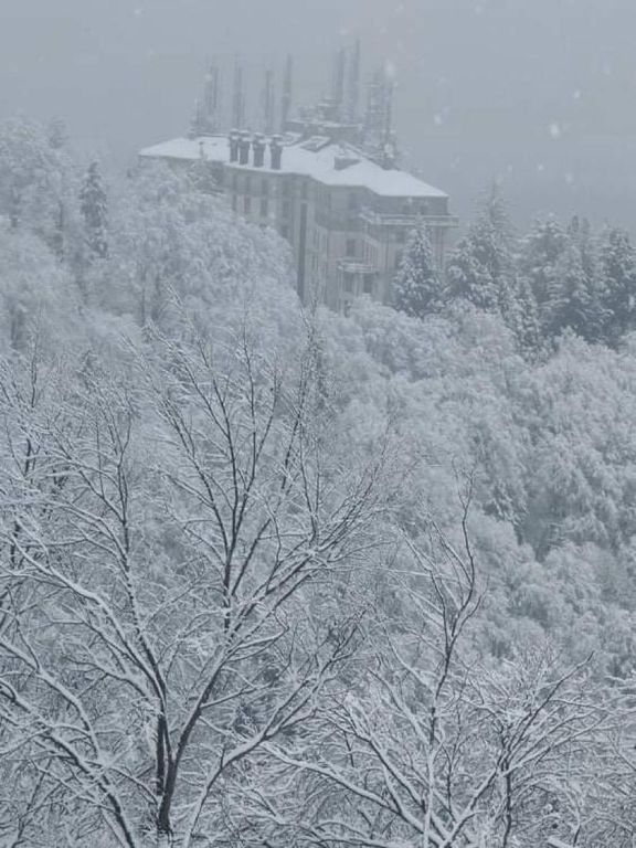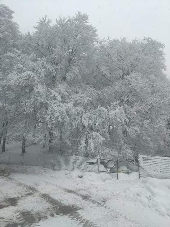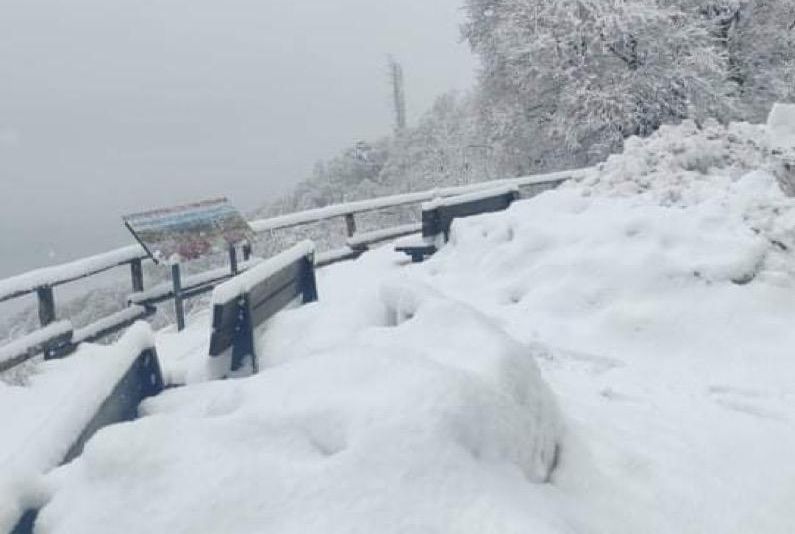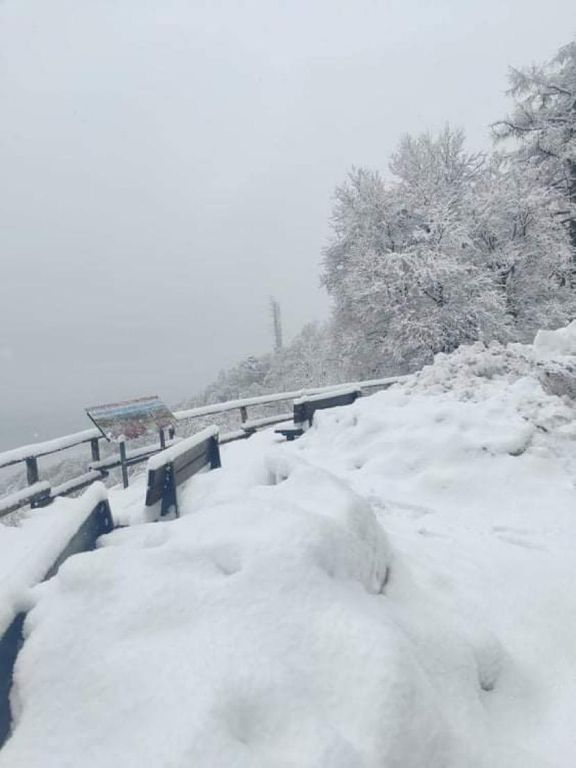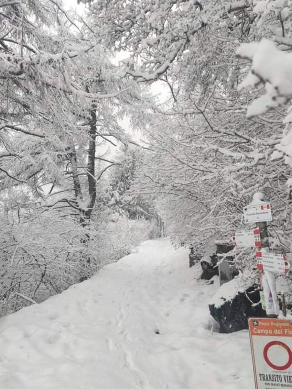 Mentre in città piove da questa notte, a quote collinari e superiori nevica con una certa insistenza: i centimetri di coltre bianca ai 1.200 metri del Campo dei Fiori sono una ventina come si può vedere da queste immagini che ritraggono il Belvedere ricoperto di neve, il Grande Hotel Campo dei Fiori tra gli alberi imbiancati, la Pensione Irma e le strade e i sentieri in prossimità della vetta. E la nevicata va avanti.
