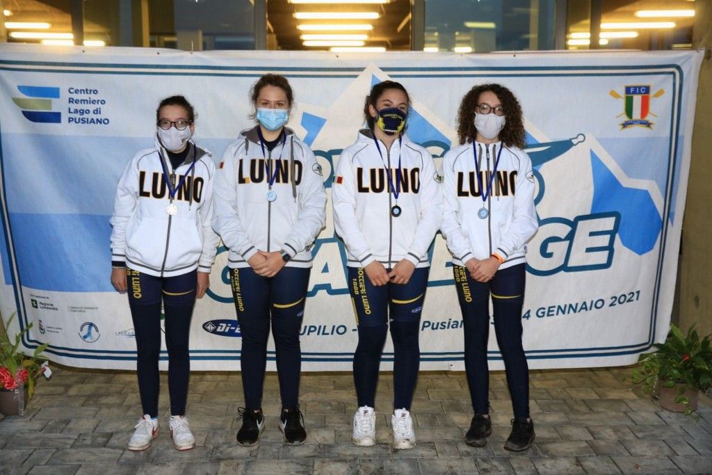 La Canottieri Luino schiera il 4 di coppia Cadette, formato da Emma e Arianna Tosi, Giorgia Melis e Aurora Morandi, e non tradisce le attese. Il tempo finale di 25’56’’ consente alle vogatrici gialloblu di piazzarsi al secondo posto dietro soltanto il quotato armo della Canottieri Moltrasio misto Tremezzina.