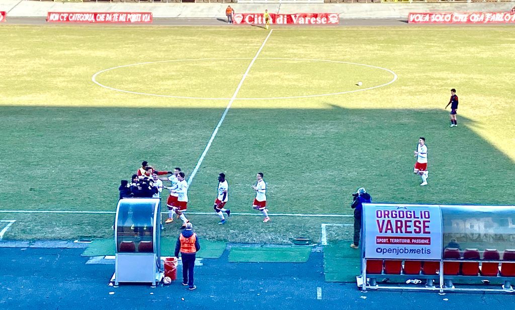 Una squadra fantastica, una partita perfetta: manca solo l'applauso del pubblico. E' anche la vittoria della curva che è arrivata fuori dai distinti per sostenere i biancorossi nel primo tempo. Ed è la vittoria del gruppo, che si raduna in mezzo al campo, come a Tortona sette giorni fa: nessun infortunio, nessun agguato del destino ferma la risalita del Varese.