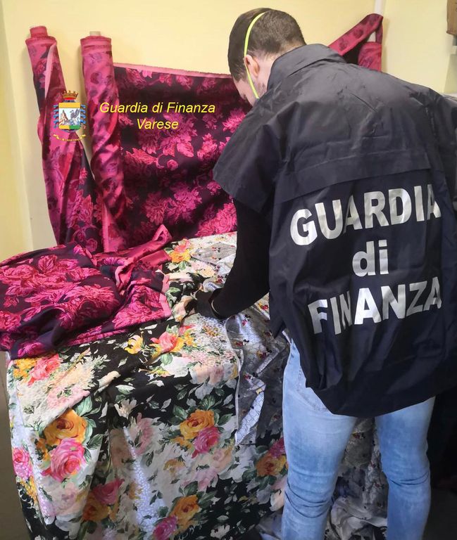 Sequestrati dalle Fiamme Gialle circa 800 metri di stoffa e cento etichette con i loghi di note case della moda. Denunciati due imprenditori