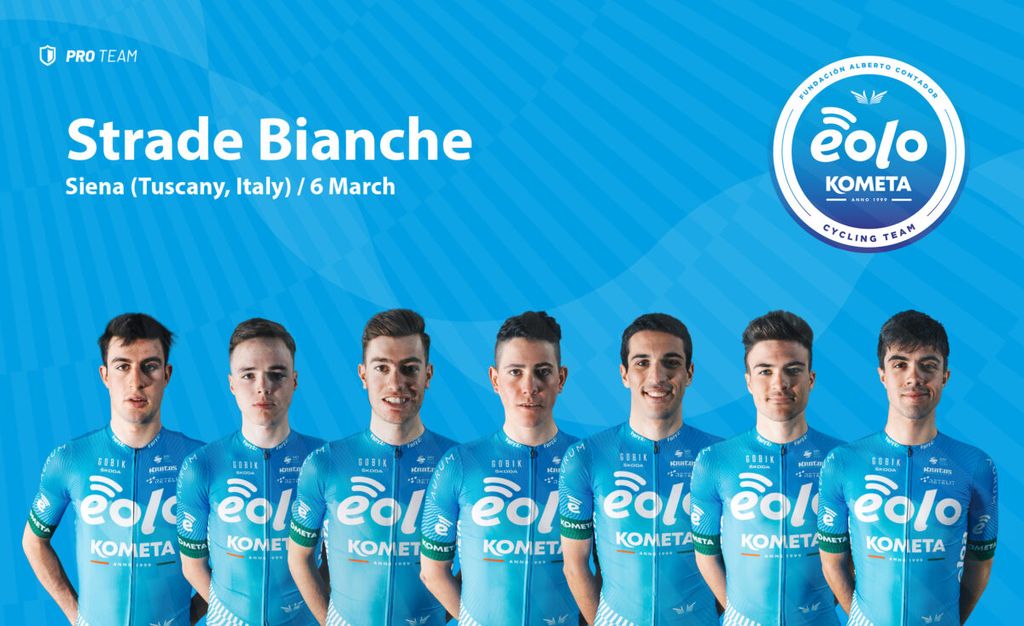 Ed eccoli, i sette alfieri di Eolo Kometa al via nella gara toscana: Davide Bais, Erik Fetter, Sergio Garcìa, Arturo Gràvalos, Samuele Rivi, Diego Sevilla e Daniel Viegas. Sono attesi da un appuntamento che significa tante cose: un debutto, una corsa prestigiosa, una gara durissima, una corsa splendida. Un appuntamento per il quale, ognuno di loro, sa di essere pronto.