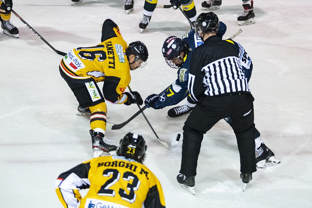 Gara-5 Caldaro-Bressanone 3-2 al 10'03" dell'overtime (serie 3-2).