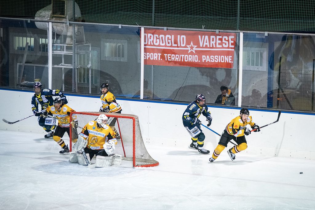Nel primo tempo un clamoroso legno di Raimondi su una splendida azione personale precedeva l'assedio giallonero, quindi la doppia superiorità in 5 contro 3 di 1'35" produceva il morso di Marcello Borghi: tiro perfetto nell'angolino, imparabile come una cannonata dopo che il Varese chiude con furia la scatola davanti al portiere Gaiser. Primo periodo con i padroni di casa che schiumano rabbia, cercano quasi il contatto, giocano giustamente duro perché quello che è successo non va dimenticato.