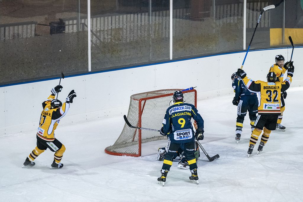 Reti: 17'18” (MV) M. Borghi (Drolet, Schina) PP2, 22’10” (MV) Payra (Piroso, Drolet) PP1, 30’24” (MV) Drolet (M. Mazzacane, Ilic), 31’46” (MV) Drolet (M. Mazzacane, Payra), 33’53” (MV) M. Borghi (Raimondi, De Biasio), 41’56” (MV) Davide Xamin (E. Mazzacane, A. Bertin), 43’03” (A) Galimberti, 48’48” (A) Mair (Lancsar, Gamper), 50’58” (MV) Vanetti (Drolet, Schina)