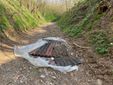 Lastre di eternit in mezzo al bosco, proprio sul sentiero accidentato e conservato in condizioni davvero pessime (si incontrano piastrelle, rami e quant'altro sparpagliato ovunque a mo' di discarica) ma comunque utilizzato in questi giorni di caldo quasi estivo anche da famiglie e mamme spesso con bambini che raggiungono dalla chiesa di Santo Stefano a Bizzozero i pratoni sottostanti.