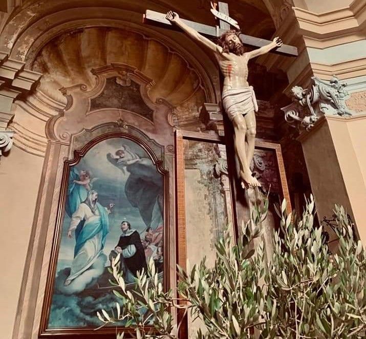 Il momento migliore, secondo Carla, per visitare questa esposizione è verso metà pomeriggio, quando il sole sta tramontando e dal finestrone della facciata entra un raggio di sole che pian piano si alza e illumina prima l’ulivo, poi il Cristo, «è un effetto drammatico, suggestivo, unico, che ci ricorda che tutto il sistema della Via Sacra è stato costruito con particolare consapevolezza del potere della luce», tipica dell’ingegneria Seicentesca.