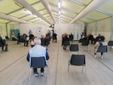 Nella prima tenda si misura la temperatura (deve essere inferiore a 37.5°) e si compilano i fogli necessari per poter accedere al successivo step (fogli che possono essere pre-stampati e portati già compilati da casa). Le due tensostrutture successive sono quelle dove avvengono le vaccinazioni: si calcola un tempo d'attesa di non più di 15 minuti, si accede alla prima o alla seconda come indicato dal numero di prenotazione e si sosta su appositi "segnaposto" (30 in tutto a un metro e mezzo l'uno dall'altro). Nel corridoio vaccinale ci sono dieci postazioni "isolate" per garantire la privacy dove avviene l'iniezione e a cui seguono, in un ultimo apposito spazio appositamente predisposto, 15 minuti di attesa trascorsi i quali si può tornare alla propria auto.