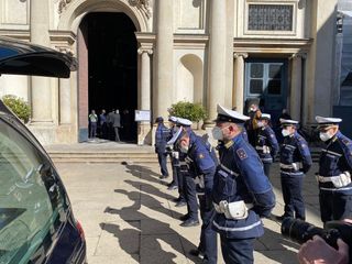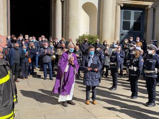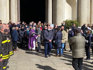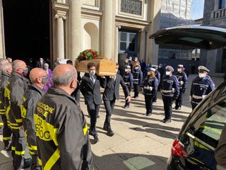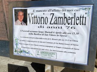 La moglie Pinuccia tocca commossa il feretro del suo Vittorio per un'ultima volta prima che lasci piazza San Vittorie, sostenuta da don Erve Oddone Simeoni che aveva usato parole semplici ma sentite nel ricordarlo durante l'omelia, le parole di un amico, mentre attorno il rumore del vento amplifica il silenzio e la polizia locale, guidata dal comandate Matteo Ferrario, è schierata per l'addio a quello che è stato molto più di un vice comandante o di un vigile: Vittorio era colui da cui arrivavano sempre le parole giuste, «lui ascoltava tutti e non prometteva nulla, ma poi agiva» dice Fabrizio Nova.