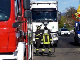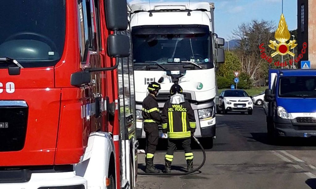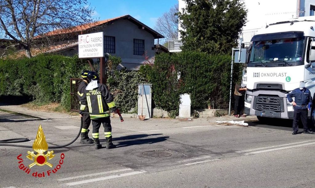 Camion urta un ostacolo e rompe il serbatoio: in campo i vigili del fuoco per la bonifica