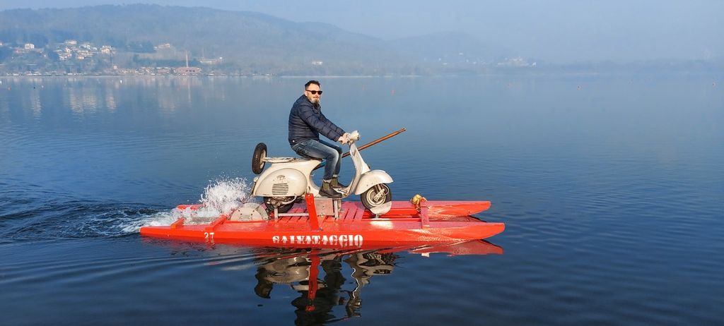 La pandemia rende complicato spostarsi da uno Stato all'altro, ma per sostenere i progetti della Fondazione Giacomo Ascoli rivolti ai bambini con patologie onco ematologiche Alessandro viaggerà allora in modo diverso: navigherà sul Lago Maggiore. Da Cannero Riviera, sulla sponda piemontese, a Luino, sul versante lombardo, in un tempo stimato di circa due ore, meteo permettendo. La Vespa Peraspera verrà alloggiata su un pattino da salvataggio che, grazie a un meccanismo composto da pale, pullegie e cinghie, consentirà di dare forza motrice alla struttura per poter compiere la traversata. L'unione tra Vespa e pattino ha generato la nascita di un vero e proprio natante omologato dalle Autorità di navigazione, unico e originale.