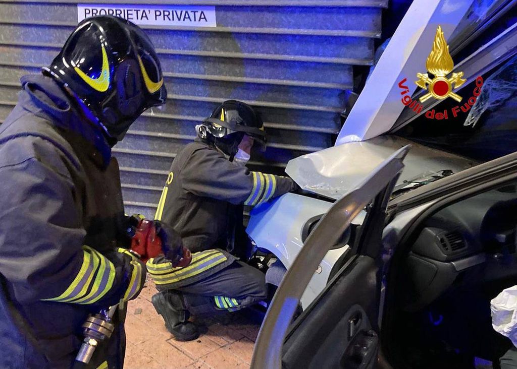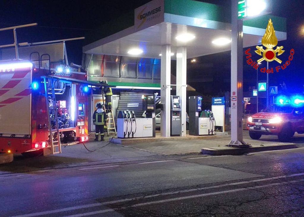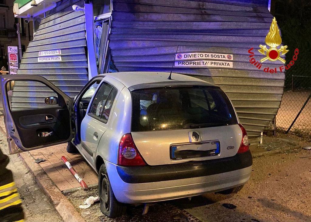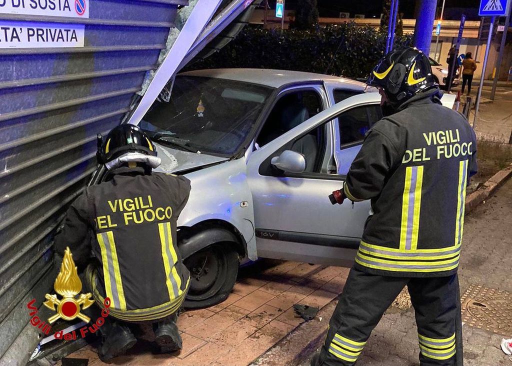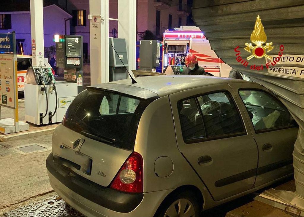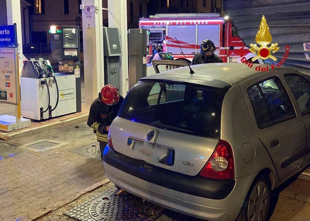 Varese, paura in viale Valganna. Auto finisce fuori strada e si schianta contro il distributore di benzina