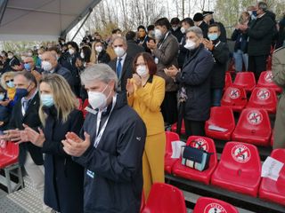 Tutti presenti, autorità e istituzioni, per celebrare a Varese il trionfo dello sport e dei campionati europei di canottaggio (leggi QUI). Nella tribuna d'onore alla Schiranna, seduti uno accanto all'altro, il primo cittadino e presidente del comitato organizzatore dei Campionati Davide Galimberti affiancato dalla sottosegretaria allo sport Valentina Vezzali e dal ministro del Turismo Massimo Garavaglia