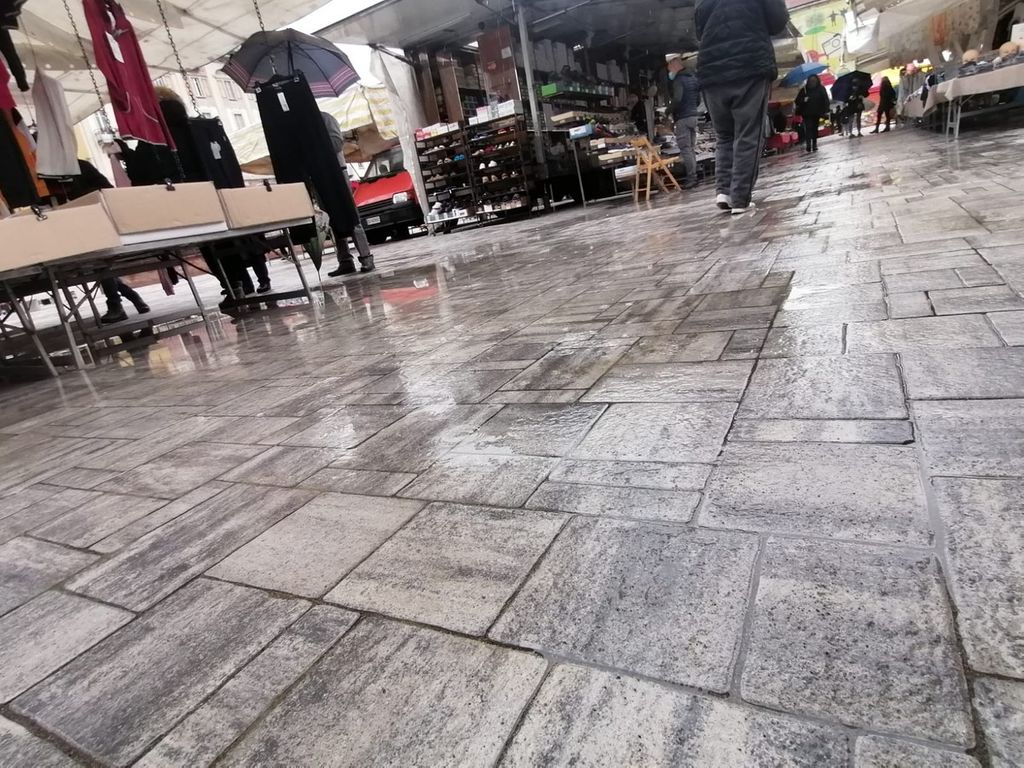 La pioggia abbondante ha messo in evidenza alcune criticità sulla pavimentazione della piazza. In alcuni punti le pendenze sono sbagliate e si formano avvallamenti e pozze. «Ci sono alcuni banchi che hanno delle pozze davanti – spiega Rodolfo Calzavara, presidente degli ambulanti di Confcommercio - E anche nei bagni entra l’acqua. Qualcosa è andato storto nei lavori. Per il resto rinnoviamo il nostro entusiasmo per lo spostamento, che anche ai clienti piace».