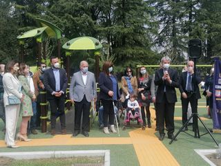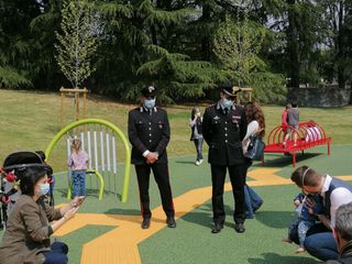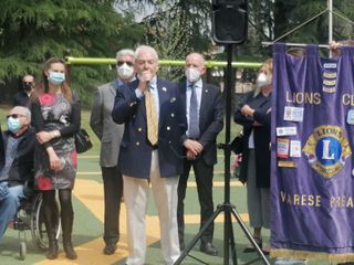A tagliare il nastro del nuovo parco giochi sono stati questa mattina insieme alle mamme Anita Romeo ed Emanuela Solimeno, il sindaco Galimberti, l'assessore all'Ambiente Dino De Simone, Roberto Molinari, assessore ai Servizi sociali, e Andrea Civati, responsabile dei Lavori Pubblici. Presenti anche i responsabili delle associazioni partner del progetto ASBI ODV, AILA ONLUS e KIWANIS VARESE e la Fondazione Cattaneo.
