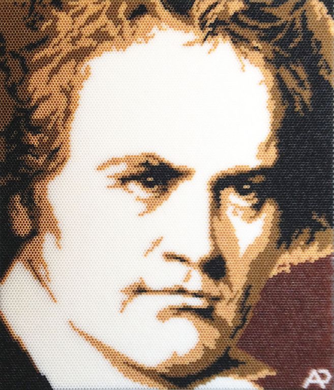 Inoltre, le numerose opere che ritraggono icone e personaggi storici, come Tesla, Darwin, Guglielmo Marconi, Leonardo da Vinci (accompagnato da una piccola opera raffigurante la Monna Lisa), Mao Tse Tung, Anna Frank, si uniscono a ritratti più contemporanei, come quelli di Lady Gaga, Vasco Rossi, e anche un recente ritratto del critico Vittorio Sgarbi.