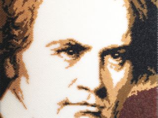 In mostra, spiccano i ritratti di Andy Warhol, di Mick Hagger, del Dalai Lama, realizzati riutilizzando delle cannucce colorate, oggetti che dopo essere stati utilizzati per pochissimi minuti vengono buttati. Ma attraverso la sua arte e la sua peculiare tecnica “puntiforme” questa materia può rientrare idealmente in un ciclo vitale.