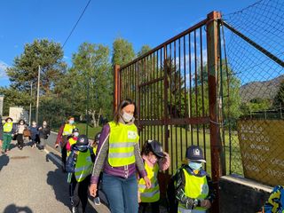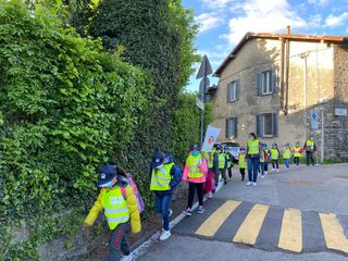 Tre i punti di partenza per un unico arrivo: la scuola di Velate. Il principale punto di partenza davanti al cimitero dove è stata pensata una mobilità kiss and go: arrivi, saluti, lasci e prosegui. Presenti questa mattina gli assessori Rossella Dimaggio e Dino De Simone, le insegnanti della scuola che hanno costruito il progetto, e la preside Silvia Sommaruga.