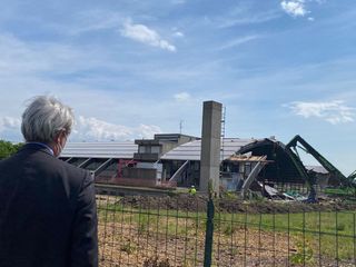 «C'è un pizzico di nostalgia nel vedere l'abbattimento di una struttura che ha dato lustro allo sport della provincia perché penso che tutti, fin da bambini, siamo entrati lì con i pattini o a nuotare, o ad assistere a qualche grande partita o esibizione sul ghiaccio. Ma questo momento è anche storico perché avvicina il passato e il presente del Palalbani e della città dello sport al futuro»: sono le parole con cui il sindaco Davide Galimberti, questa mattina, ha accompagnato i lavori di abbattimento del tetto del palaghiaccio, a partire dall'area ghiaccio.