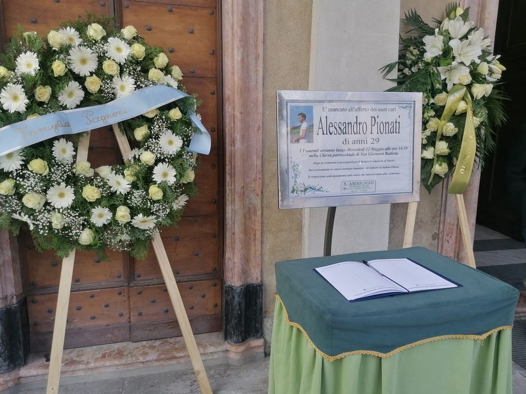 Una folla silenziosa nella chiesa di San Giovanni per l'addio al giovane varesino vittima di un incidente in moto. Pionati era un ingegnere aeronautico e il parroco lo ha ricordato con una frase di Leonardo: «Quando camminerete sulla Terra dopo aver volato guarderete il cielo perché là siete stati e là vorrete tornare»
