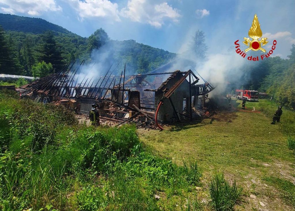 FOTO. Fiamme al Brinzio: intervento in forze dei vigili del fuoco