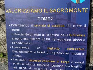 «Proponiamo la personalizzazione del Sacro Monte nei weekend utilizzando autobus e navette incrementati o salendo a piedi - spiega Coletto - tranne ovviamente per chi ha prenotazioni nelle strutture ricettive e nei ristoranti del Borgo. Proporremo la nostra petizione, per cui inizieremo a raccogliere le firme da domani nei banchetti posizionati in città, a chiunque vincerà le elezioni e al consiglio comunale».