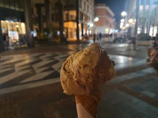 La serata è calda e qualche famiglia cerca un po’ di sollievo tra un gelato e una granita.