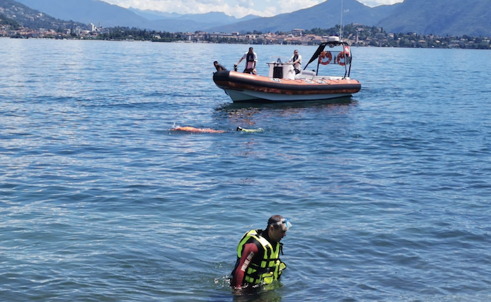 L'episodio è avvenuto ieri mattina nelle acque di Baveno. Necessario l'intervento dell'elicottero e dei sommozzatori per le ricerche dell'uomo, residente a Stresa