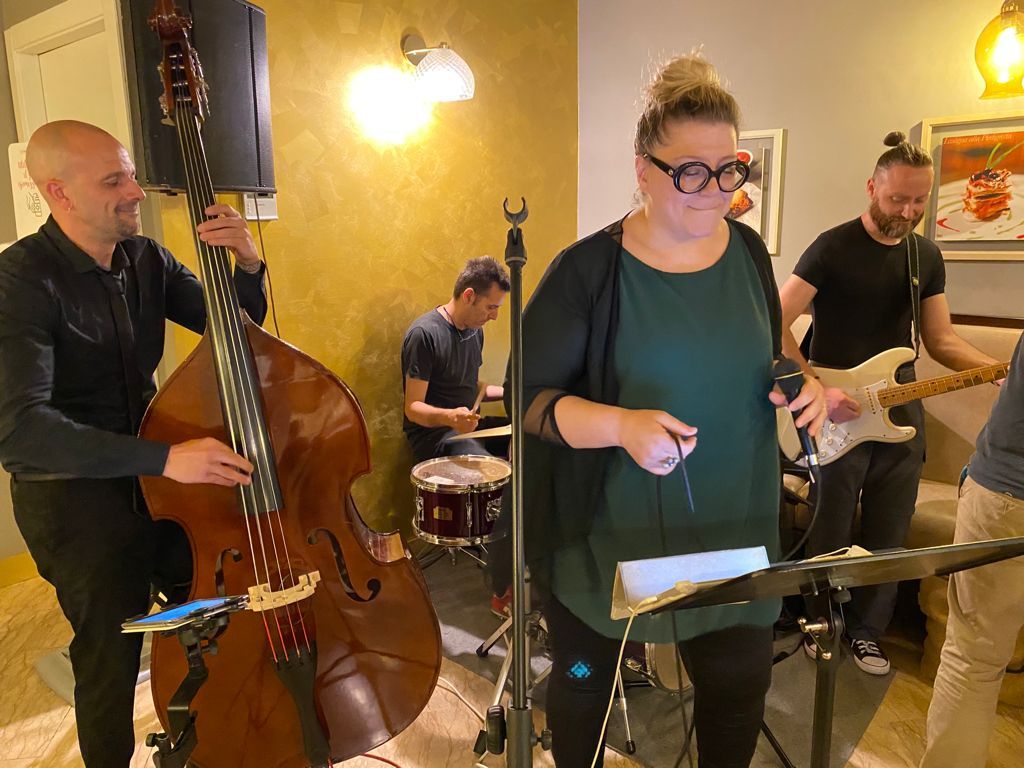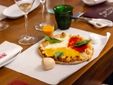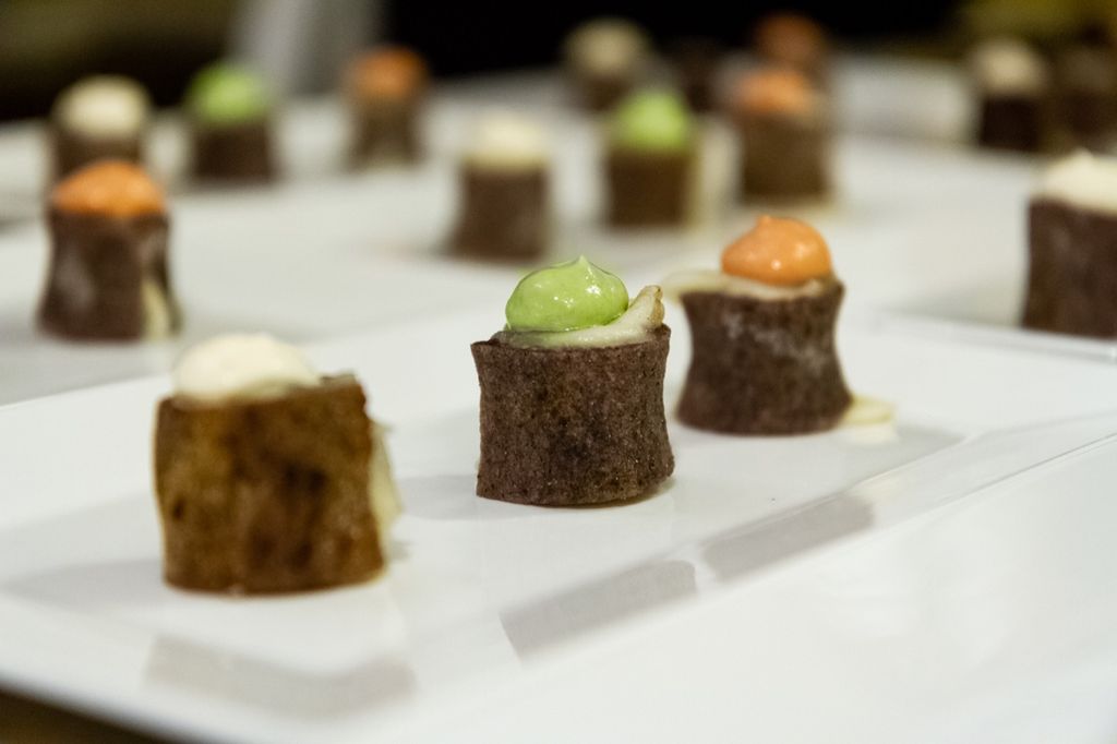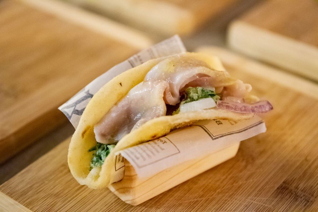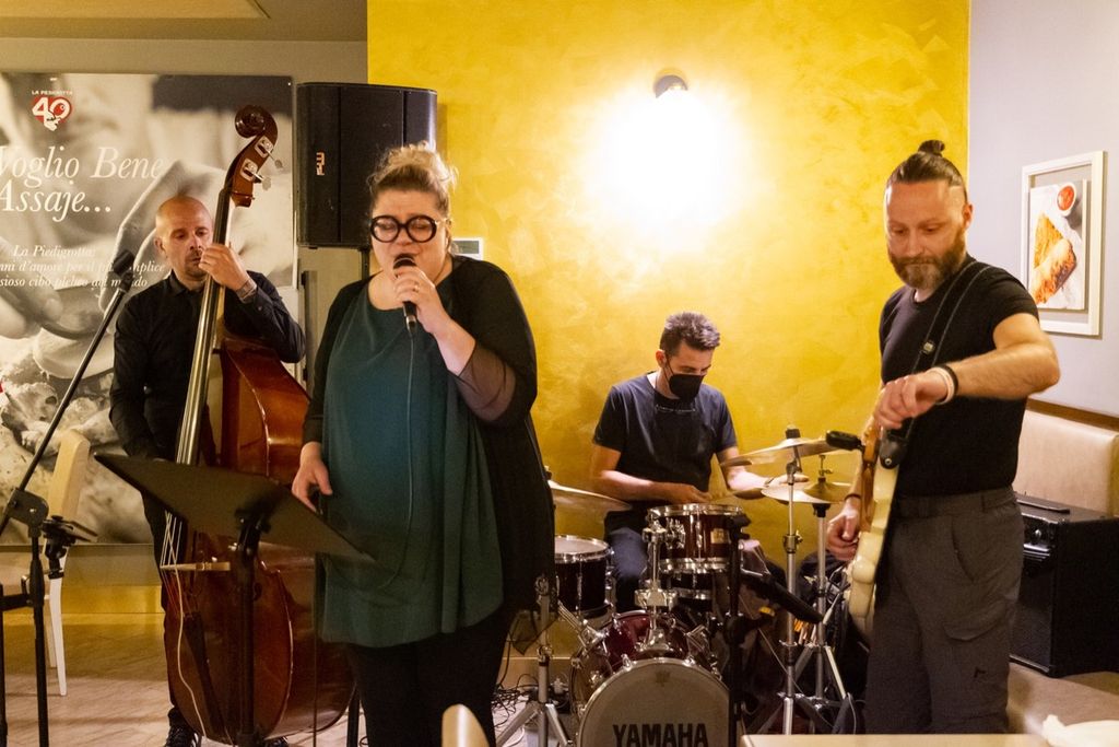 Il menu, pensato da chef Antonello e da Giorgio Puleo, è proseguito poi con un originale tacos di pasta di pizza con cipolla di Tropea (filo conduttore della serata), salsa di yogurt greco e cetriolo. Accompagnati dalle note di pezzi leggendari del rock anni Sessanta/Settanta (la band di Paolo Frattini ha spaziato dai classici dei Beatles alle sonorità made in Usa dei Creedence Clearwater Revival fino ai più moderni AC/DC), sul palco del gusto è salita la "merenda all'italiana" cioè un bis di panino di pizza con salame di pomodoro.