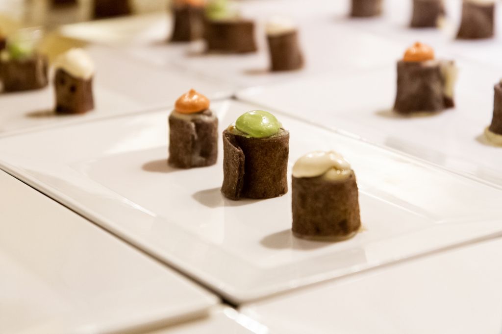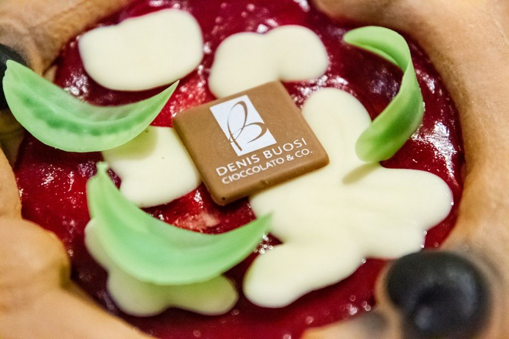 Ad accompagnare i commensali, tra un calice di bollicine e l'altro, verso la conclusione della cena, ecco l'hot dog di pizza, gioiello anche per la vista, e l'uovo poche di pizza. Spazio infine ai dolci tra cui ha spiccato, insieme al gelato, la creazione firmata da Denis Buosi, una torta-pizza con confettura e cioccolato bianco. E come ultimo dono, il panettone alla cipolla di Matteo Beretta, maestro legnanese dei lievitati.
