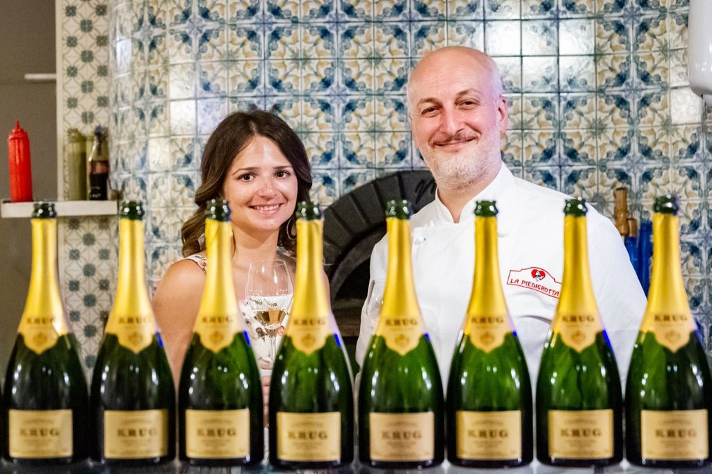 La 169esima di Krug Grande Cuvée, la pizza della pace, ultima geniale trovata dello chef Antonello Cioffi, e tanta buona musica: questi gli ingredienti di "Pizza, Krug e rock'n'roll", l'ennesimo appuntamento con il grande gusto e gli abbinamenti da favola proposti ieri sera alla Piedrigotta (clicca QUI per il sito e QUI per la pagina Facebook).
