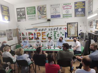 Non poteva che iniziare da piazza del Podestà, nella culla della Lega, la «partenza a testa bassa» di Matteo Bianchi candidato sindaco del centrodestra. «Abbiamo cento giorni per dare un'alternativa a Varese» ha detto il deputato di Morazzone sotto il Garibaldino, dove una volta Umberto Bossi raccoglieva migliaia di persone, prima di salire in mezzo ai militanti della sede storica della Lega, dove è arrivato anche il governatore lombardo Attilio Fontana insieme, tra gli altri, a Stefano Gualandris, Cristiano Angioy Voglio, Mirko Reto e Alberto Nicora.