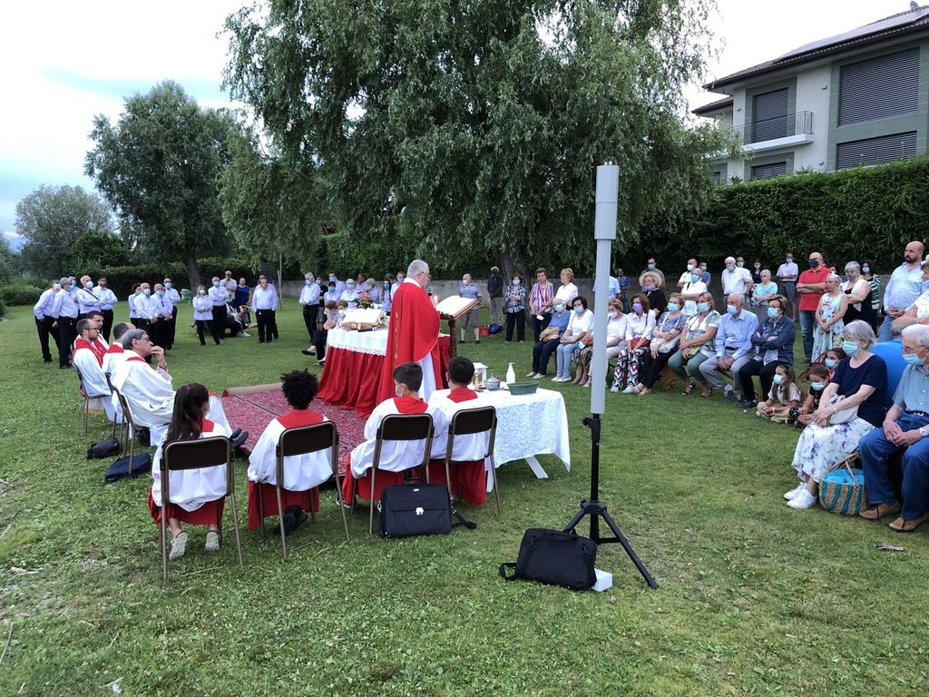 Con una messa molto suggestiva in riva al lago, a Lisanza, la parrocchia di Sesto Calende ha festeggiato lunedì 28 giugno i vent’anni di servizio pastorale di don Dino Vanoli. La messa è stata accompagnata dai canti del Coro Alpino Sestese, diretto dal maestro Luca Boni: un complesso di 28 elementi che ha reso ancora più importante la funzione. Accanto a Don Dino hanno concelebrato gli altri quattro sacerdoti di Sesto, assistiti da quattro chierichetti.