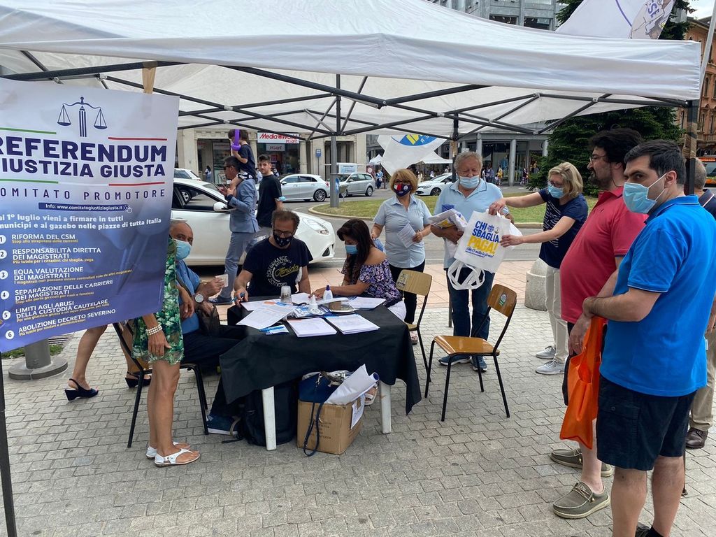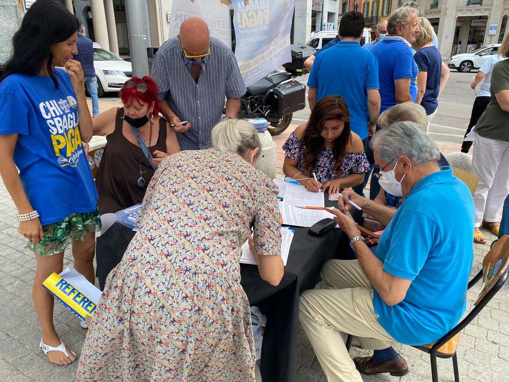 VIDEO E FOTO. Tovaglieri in piazza: «Tante firme in poche ore per riformare la giustizia a tutela di cittadini e amministratori»