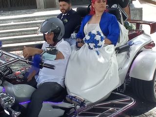 Usciti dalla chiesa di San Pietro e Paolo di Biumo Inferiore, dove hanno giurato un’altra volta le loro promesse dopo averlo fatto l’anno scorso in Comune, i due varesini sono sfrecciati tra gli applausi e l’emozione degli invitati a bordo di un mezzo molto particolare, scortati da Harley Davison e Gold Wing Honda.