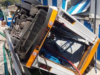 Sono impressionanti le immagini dell'incidente avvenuto in tarda mattinata a Capri, dove un autobus è uscito di strada precipitando nei pressi del lido "Le Ondine" di Marina Grande. Il conducente del veicolo è morto mentre sono 28 le persone ferite, trasportate al pronto soccorso di Capri. Alcuni di loro sono in gravi condizioni: in particolare due di loro sono stati trasferiti in elicottero a Napoli. Un volo di 5-6 metri piombato tra i bagnanti in una tranquilla mattinata di estate al mare. Ecco le immagini rese pubbliche dai vigili del fuoco.