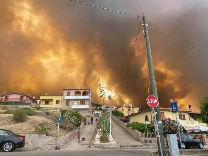 Nel suo racconto, pali della luce piegati dal calore, un’auto esplosa, animali ricoverati nei cortili delle scuole per salvarli dal rogo. «Le aree più colpite, per quello che ho potuto vedere, sono Tresnuraghes, Porto Alabe e, appunto, Cuglieri. Qui mi dicono che l’incendio è arrivato alle poste, non lontano da dove soggiorno. E, in effetti, un pezzo del giardino di casa è andato a fuoco. Oggi il cielo e l’intero paese erano coperti dal fumo, l’aria era irrespirabile, non si vedeva niente. Cenere dappertutto». Foto in fondo all'articolo