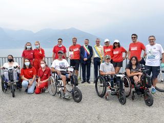 Sabato a mezzogiorno a Luino ad accogliere sul lungolago il gruppo di carrozzine motorizzate e biciclette c’erano il sindaco Enrico Bianchi con l’assessore Fabrizio Luglio e il presidente del Comitato Locale della Croce Rossa Luino e Valli Pierfrancesco Buchi.