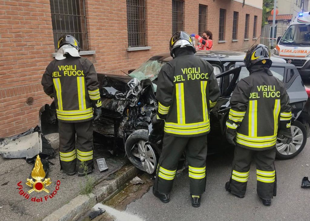 Per cause in fase di accertamento il conducente di un’autovettura ha perso il controllo del veicolo finendo contro un muro di un edificio di via Verdi a Cesate.